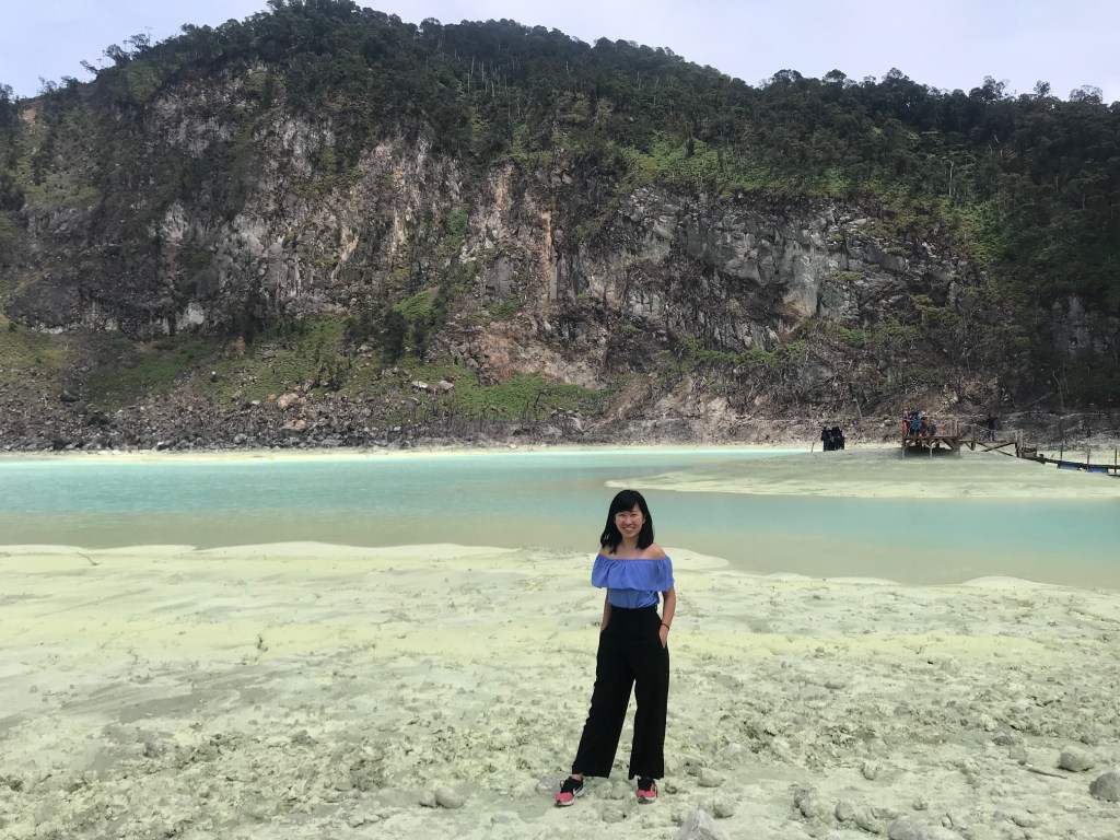 Kawah Putih (or White Crater) is one of the must-sees in Bandung. You will notice the surroundings are white-ish but the water is turquoise, making the experience quite mystical indeed. You can stay on the wooden bridges, or walk on the white-ish soil but beware parts of it are muddy and your shoes might sink in (and get “destroyed”). We were also advised to wear a mask and not stay more than 30 minutes because of the sulphur dioxide in the air.